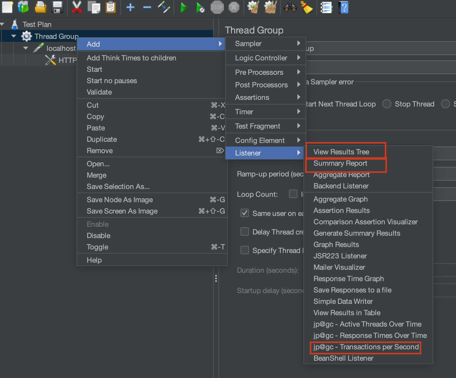 저는 이번 포스팅에선 Thread Group에 Listener 설정하겠습니다.